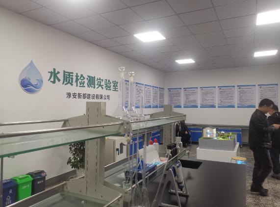 該治水客廳建筑面積近200平方米,一樓為水質(zhì)檢測實驗室,利用自動化監(jiān)測系統(tǒng)、微型水質(zhì)監(jiān)測站等,能對PH、COD、氨氮、總磷、總氮、SS等指標進行實時檢測。今年以來共檢測水樣228個,分析水質(zhì)數(shù)據(jù)1600余個,準確、及時、全面地反映水質(zhì)現(xiàn)狀及發(fā)展趨勢,對污水出水水質(zhì)實現(xiàn)自我監(jiān)督的同時根據(jù)水質(zhì)檢測結(jié)果對農(nóng)污終端進行針對性調(diào)試,做到有的放矢,確保水質(zhì)達標排放,助力武強溪流域水環(huán)境保護。室內(nèi)精心設(shè)計了全市首個農(nóng)村污水處理沙盤,全方位動態(tài)展示污水來源、處理工藝流程和尾水的循環(huán)利用,讓參觀者直觀地感受到當?shù)剞r(nóng)村污水處理流程。