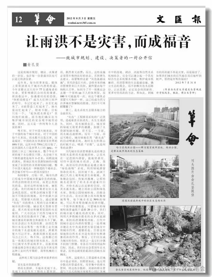 【逝者】俞孔堅(jiān):讓雨洪不是災(zāi)害,而成福音——致城市規(guī)劃、建設(shè)、決策者的一封公開(kāi)信